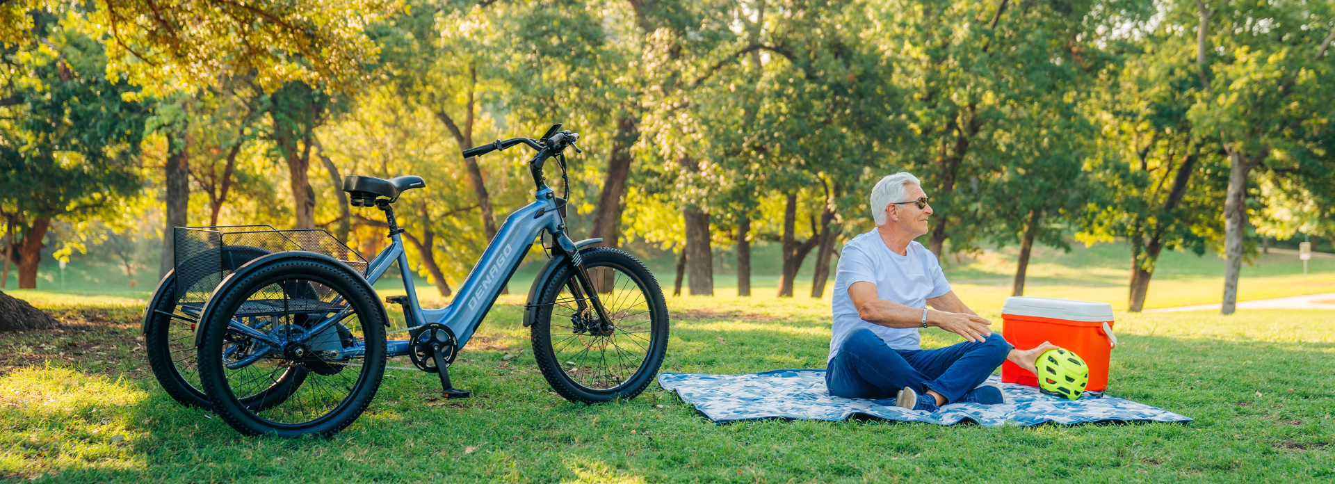 The Denago Trike 1 eBike is a three-wheeled electric bicycle equipped with an LG 48V/20Ah battery, providing you with powerful performance and long-lasting endurance. With a sturdy cargo rack, it effortlessly handles various cargo transportation scenarios such as picnics and fishing trips, making your outdoor adventures and cargo transportation more convenient.