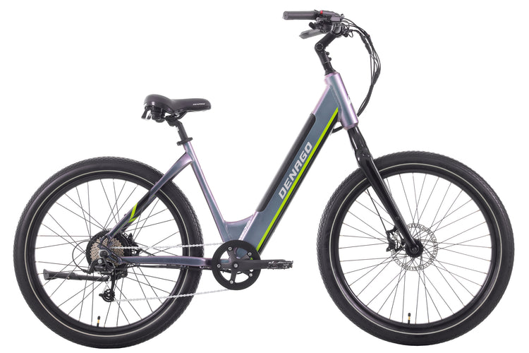Our Denago City Model 2 eBike in step-thru frame style makes it easy to start and stop, even if you have a short inseam or difficulty throwing a leg over the saddle on a traditional top tube style bike. Our follow up to our award-winning City Model 1 is upgraded with an integrated battery and wider 2.6" tires.