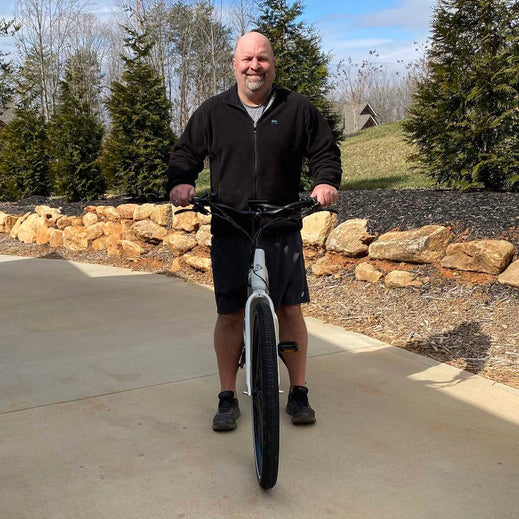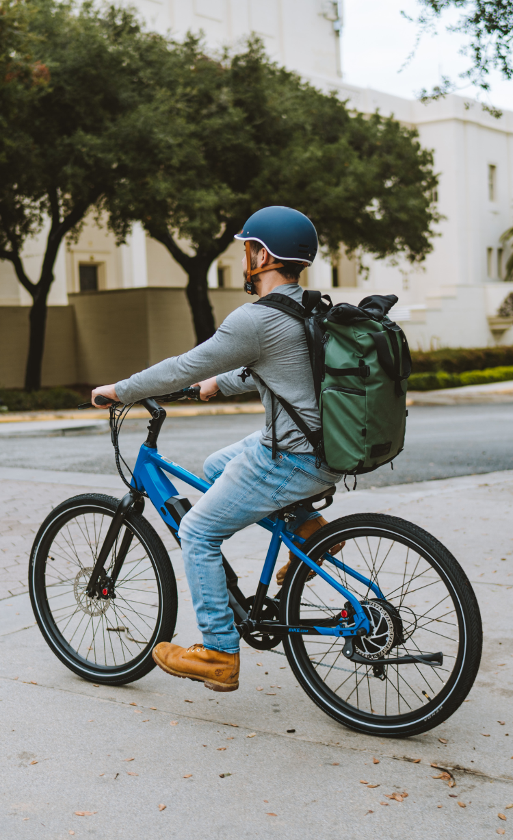 Shown riding City Model 1 Top Tube, One Size with our optional 400mm extended seatpost for tall riders.