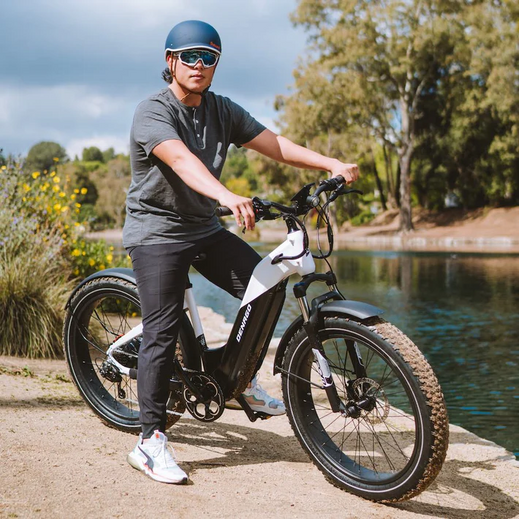 Our Denago Fat Tire eBike is one of the best values on the market. We've added an upgraded torque sensor for the most natural pedaling feel on off-road surfaces, and a massive 921.6 Wh battery for all-day rides. Packed with included accessories like a kickstand, fenders, plus integrated front and rear lights.
