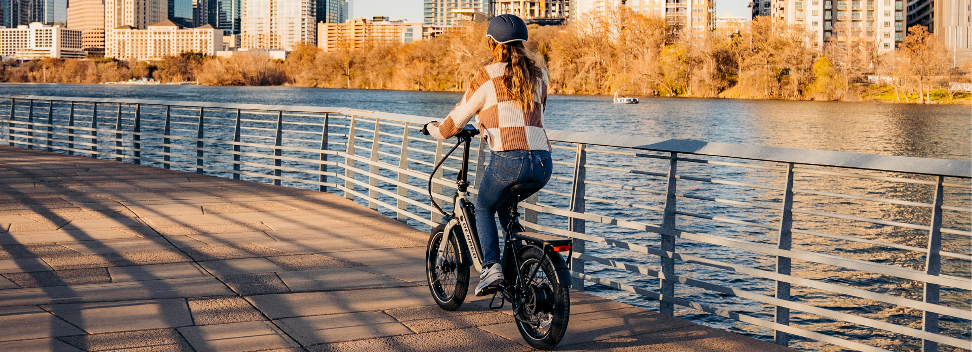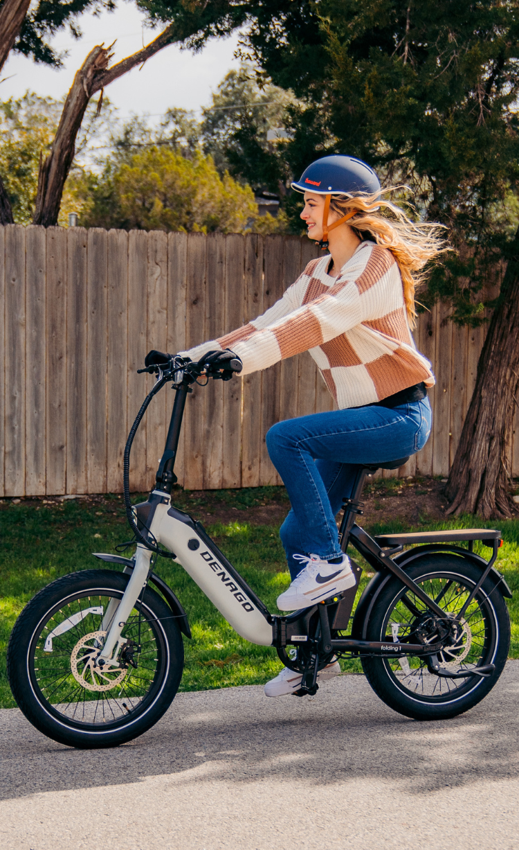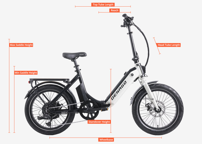 Our Denago folding eBike is a powerful, compact model ideal for van life, RV travel, or anywhere with limited storage space. When folded, it fits into a compact space just 20" wide, 35" long, and 30" tall.