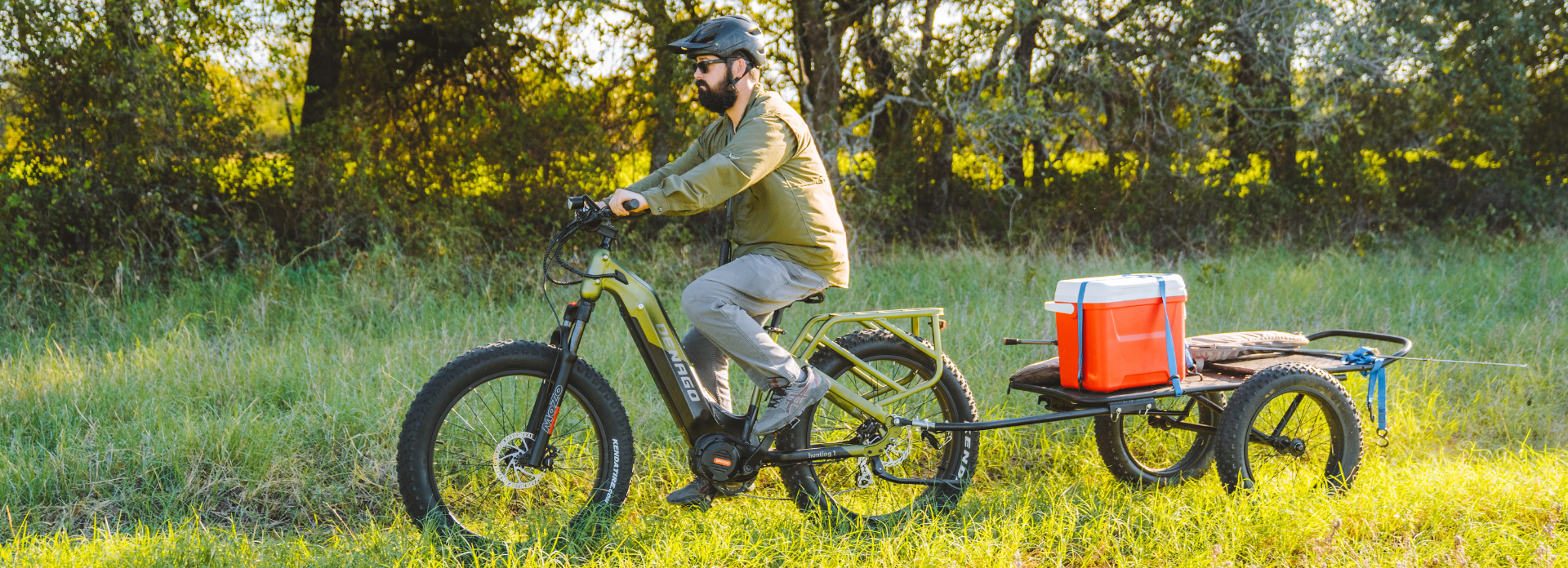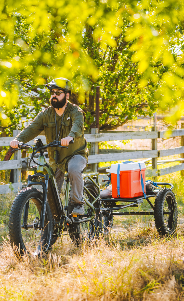 Our Hunting 1 eBike gives you the freedom to explore the great outdoors. Hunt, fish, or camp in remote locations, and haul all the gear you need with optional trailers to expand your carrying capacity. The Hunting 1 is dual battery capable, so its max range can be extended from 76 miles all the way to 120 miles. Armed with an off-road eBike like this, you can reach deer blinds or fishing holes in near silence, with no emissions or engine noise to scare away game.